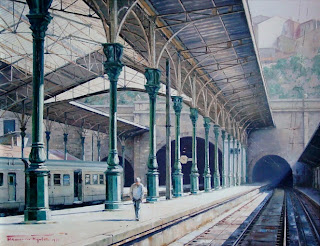 E as miúdas sorriem. O comboio chega e há um mergulho geral para a plataforma. Eu saio, mas páro. E olho. E vejo sapatos apressados. Não olham para a Estação. Não olham à volta. Para as lajes, para os bancos, para a estrutura. Para o fumo. Não escutam. Não cheiram.
